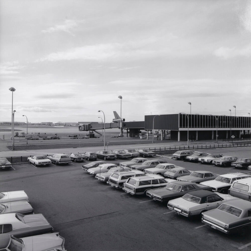DescriptionIndustrial image of airport parking lot filled with rows of cars and loading ramp in background.ProvenanceThe Hall Family Foundation, Kansas City, MO, 2016;