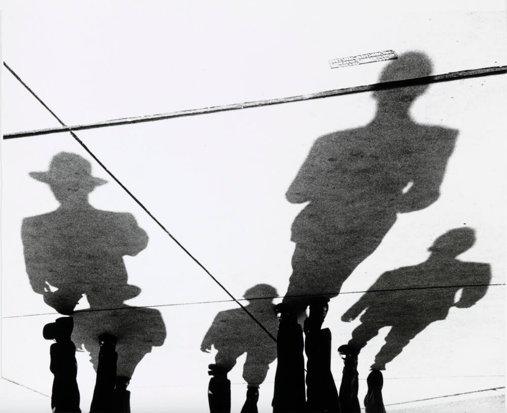 DescriptionImage of four men's elongated cast shadows projected on to divided sections of concrete.Gallery LabelSpend a few moments looking at Marvin Newman’s photograph of shadows on sidewalks, and you may feel the urge to turn them upside down. Photographing when the sun cast the longest shadows, Newman playfully reoriented his images, placing the shadows right side up, and the physical bodies upside down. In the darkroom, he then printed the photographs to emphasize the dark darks and bright whites, creating high-contrast images. Newman learned photography at the New York Photo League before moving to Chicago to study with Harry Callahan at the Institute of Design.