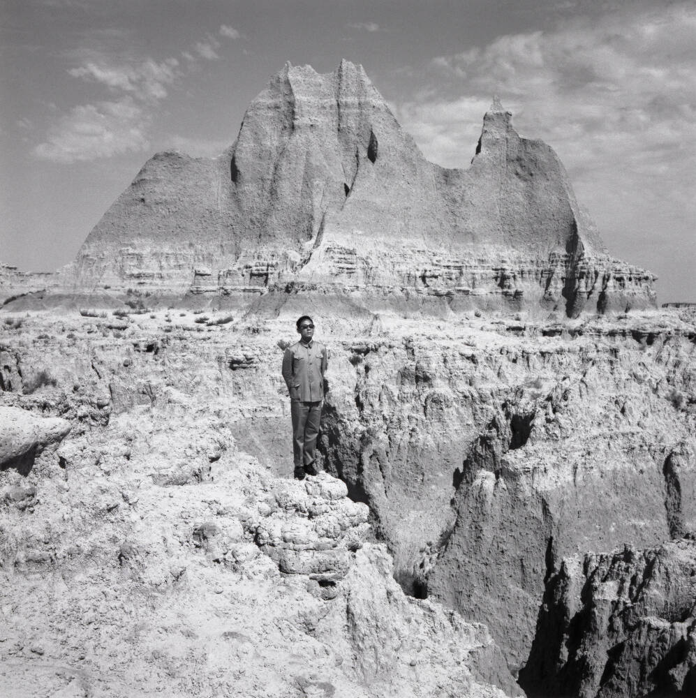 InscribedOn sheet verso, center, in black pen: “silver gelatin, selenium-toned / Printed 2016 / Badlands, South Dakota 1986”
