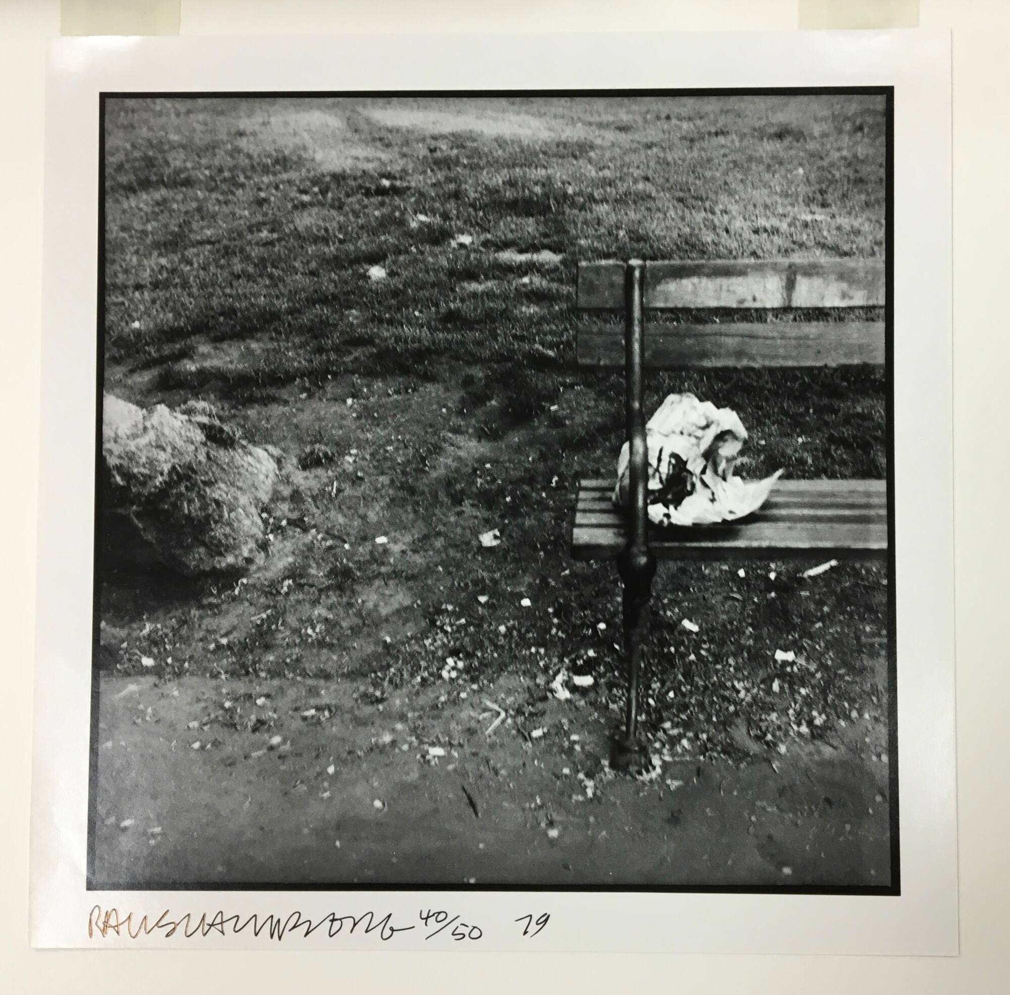 SignedSigned, editioned, and dated on sheet recto, bottom, in black pen: "RAUSCHENBERG 40/50 79"