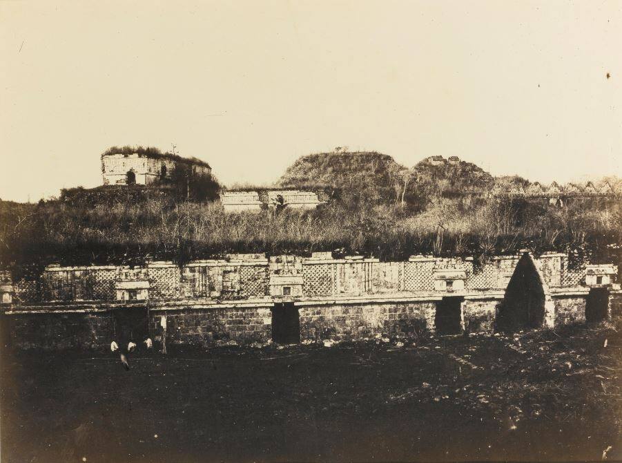 SignedOn label attached to mount recto, lower left, in black type: “Charnay, photogr. Pl. 49. Gide, éditeur, Paris. / VUE GÉNÉRALE DES RUINS, A UXMAL”
