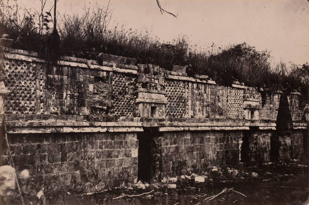SignedOn label attached to mount recto, lower left, in black type: “Charnay, photogr. Pl. 42. Gide, éditeur, Paris. / PALAIS DES NONNES, A UXMAL / CÔTÉ SUD”