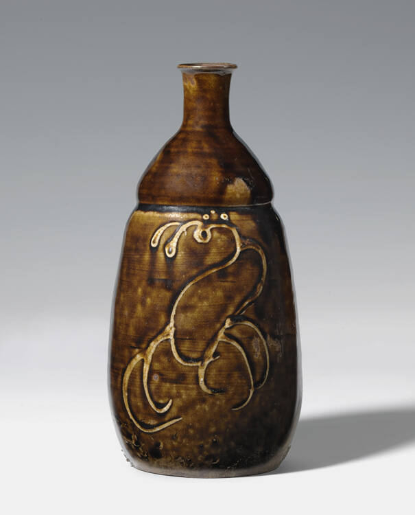 MediumStoneware with slip-trailed design and shiny brown glaze (Onta ware)