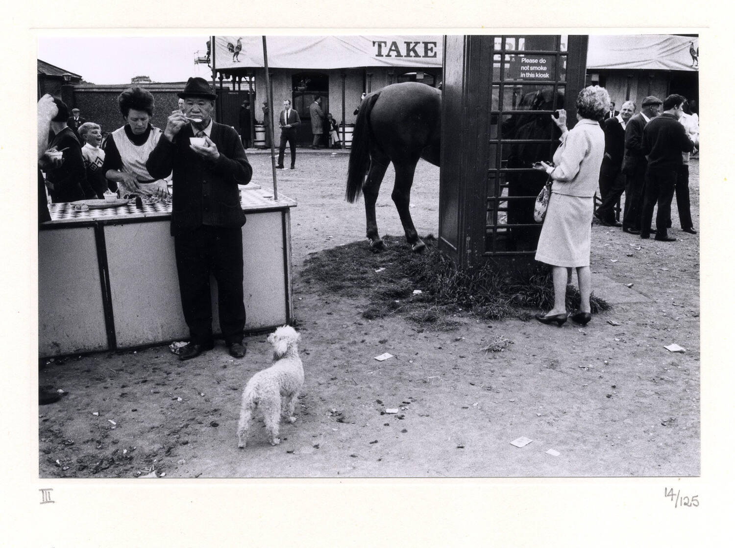 On mount verso, upper left corner, black stamp with black pen: “A PHOTOGRAPH BY / Tony Ray-Jones / 1941-1972 / PRINTED FROM THE PHOTOGRAPHER’S / ORIGINAL NEGATIVES BY / John Benton-Harris [signature] / ARCHIVAL PROCESSING BY / CONRAD HAFENRICHTER.”