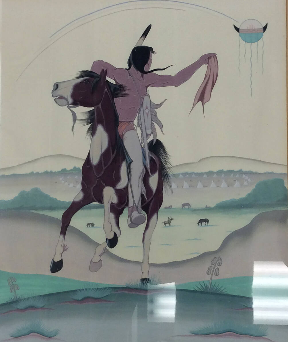 DescriptionDrawing of an Indian man riding on a horse waiving a piece of cloth in his left hand.ProvenanceThe Buckley Family, Kansas City, MO;