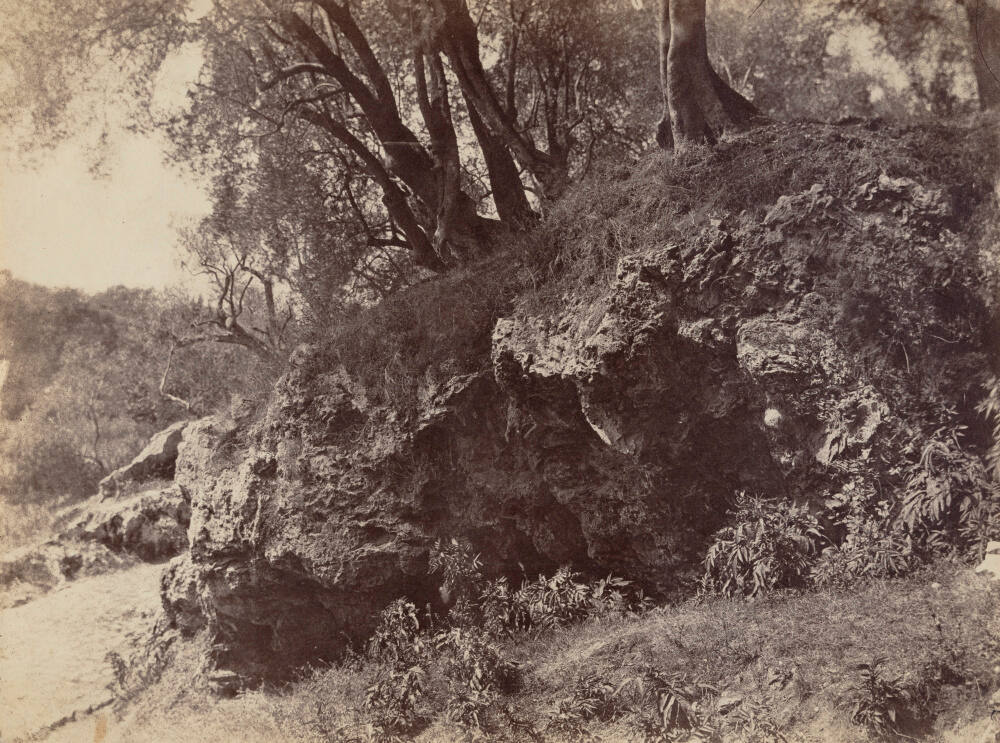 DescriptionImage of uneven rocky earth covered in vegetation with trees filling the the background beyound the frame. The horizon line is visable in left corner.ProvenanceThe Hall Family Foundation, Kansas City, MO, 2016;