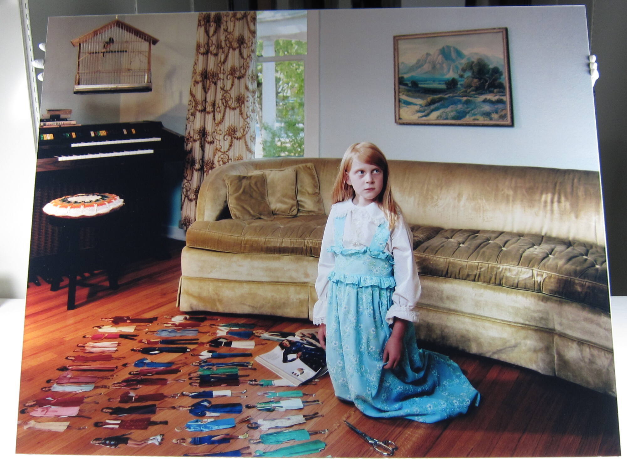 Dramatically lit and elaborately staged, Holly Andres’s photographs are reminiscent of Hollywood movie stills. Intricately constructed with a cast of brightly costumed characters, props, and effects, Andres’s photographs retain a sense of mystery and allow us to imagine our own narratives.