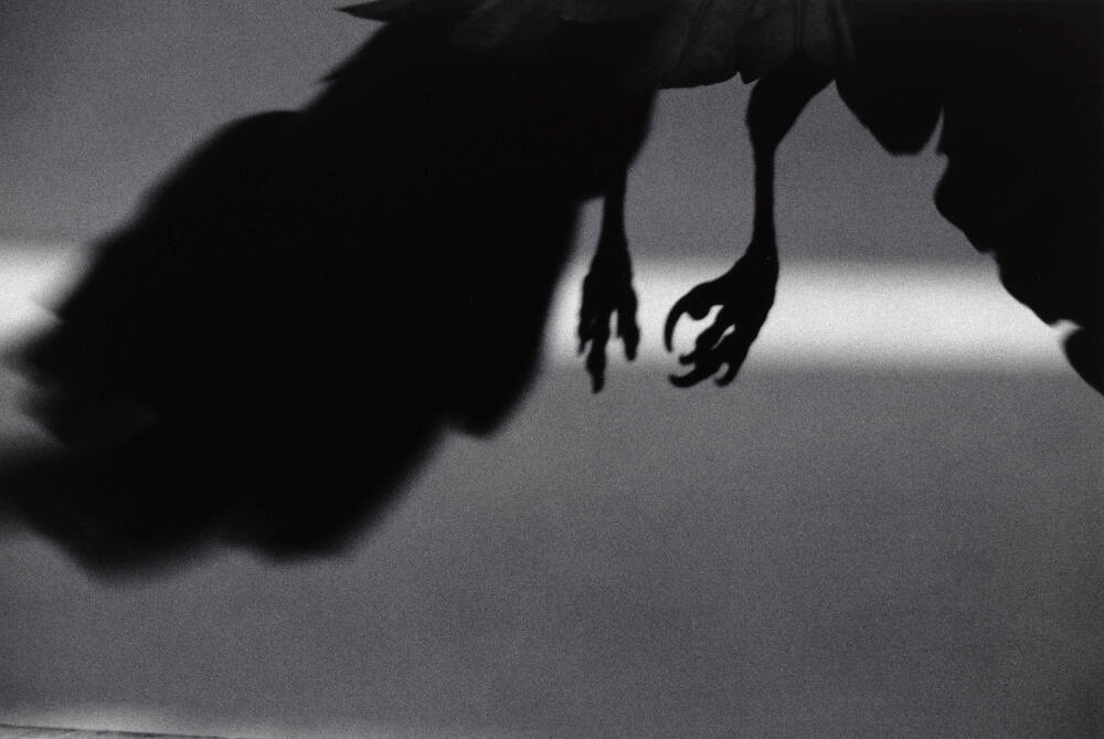 DescriptionGrainy and dark image of a lone bird with wings outstretched; cropped so that back claws and bottoms of wings are the only parts visible. The bird appears as a silhouette against a gray sky with a horizontal light streak across the center.ProvenanceThe Hall Family Foundation, Kansas City, MO, 2016;