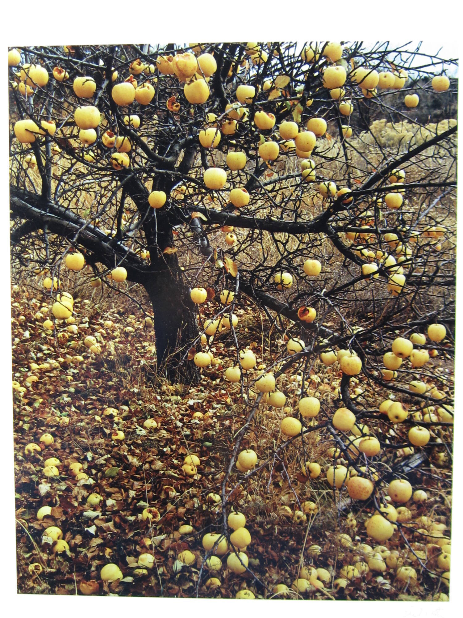 DescriptionImage of a tree with yellow apples hanging on the branches and fallen to the ground on top of a layer of leaves.ProvenanceWith Daniel Greenberg and Susan Steinhauser, Newbury Park, CA by 2016;