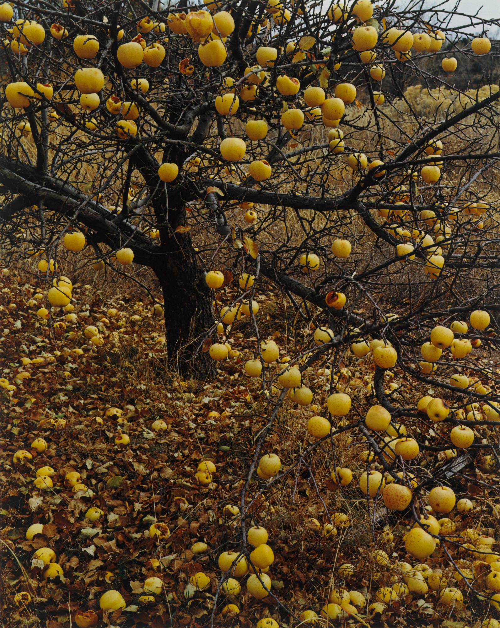DescriptionImage of a tree with yellow apples hanging on the branches and fallen to the ground on top of a layer of leaves.ProvenanceWith Daniel Greenberg and Susan Steinhauser, Newbury Park, CA by 2016;