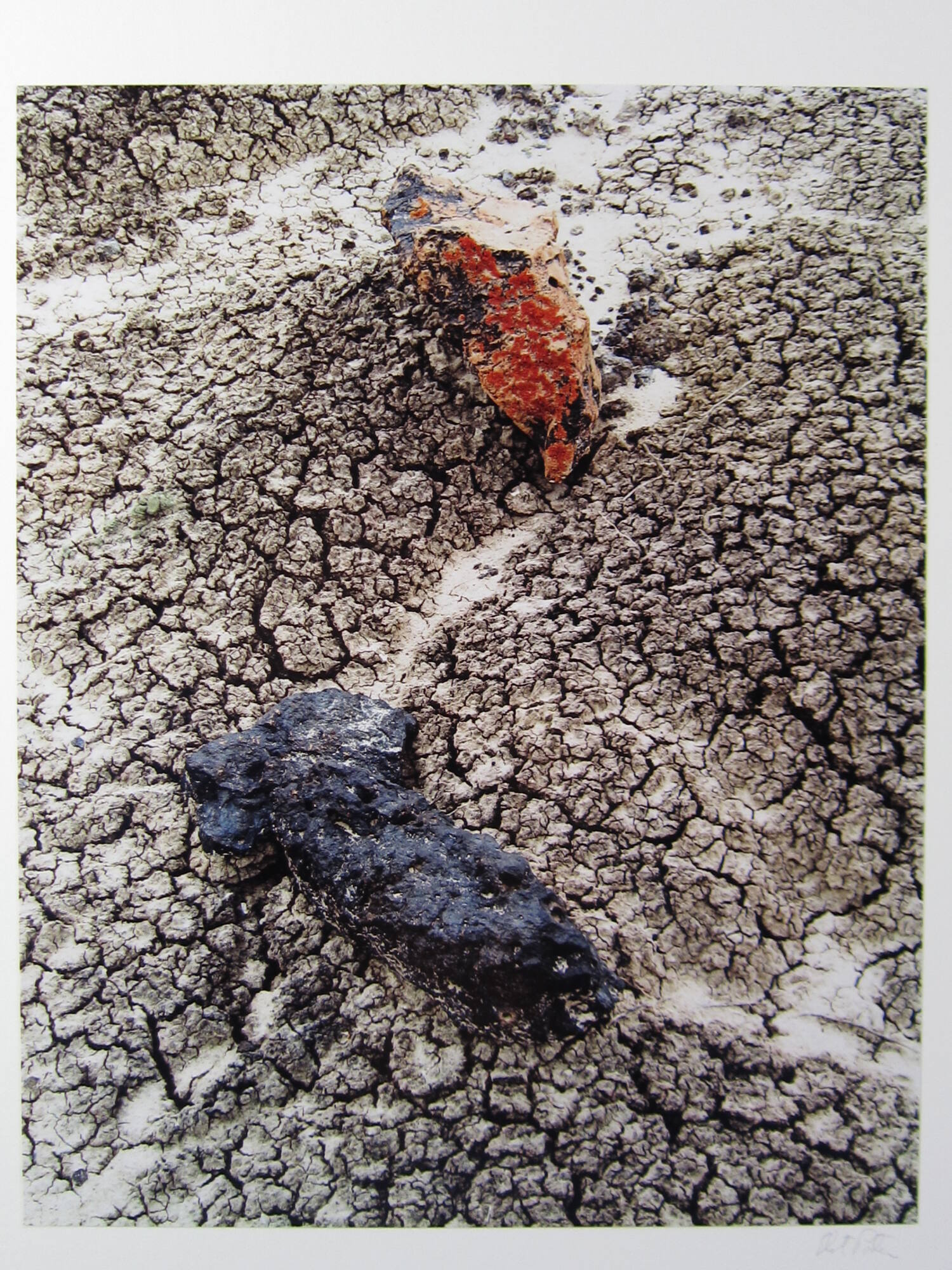 InscribedOn recto of paper sleeve, center, in black type: "Stones and cracked med. Black Place, New Mexico. June 9, 1977"