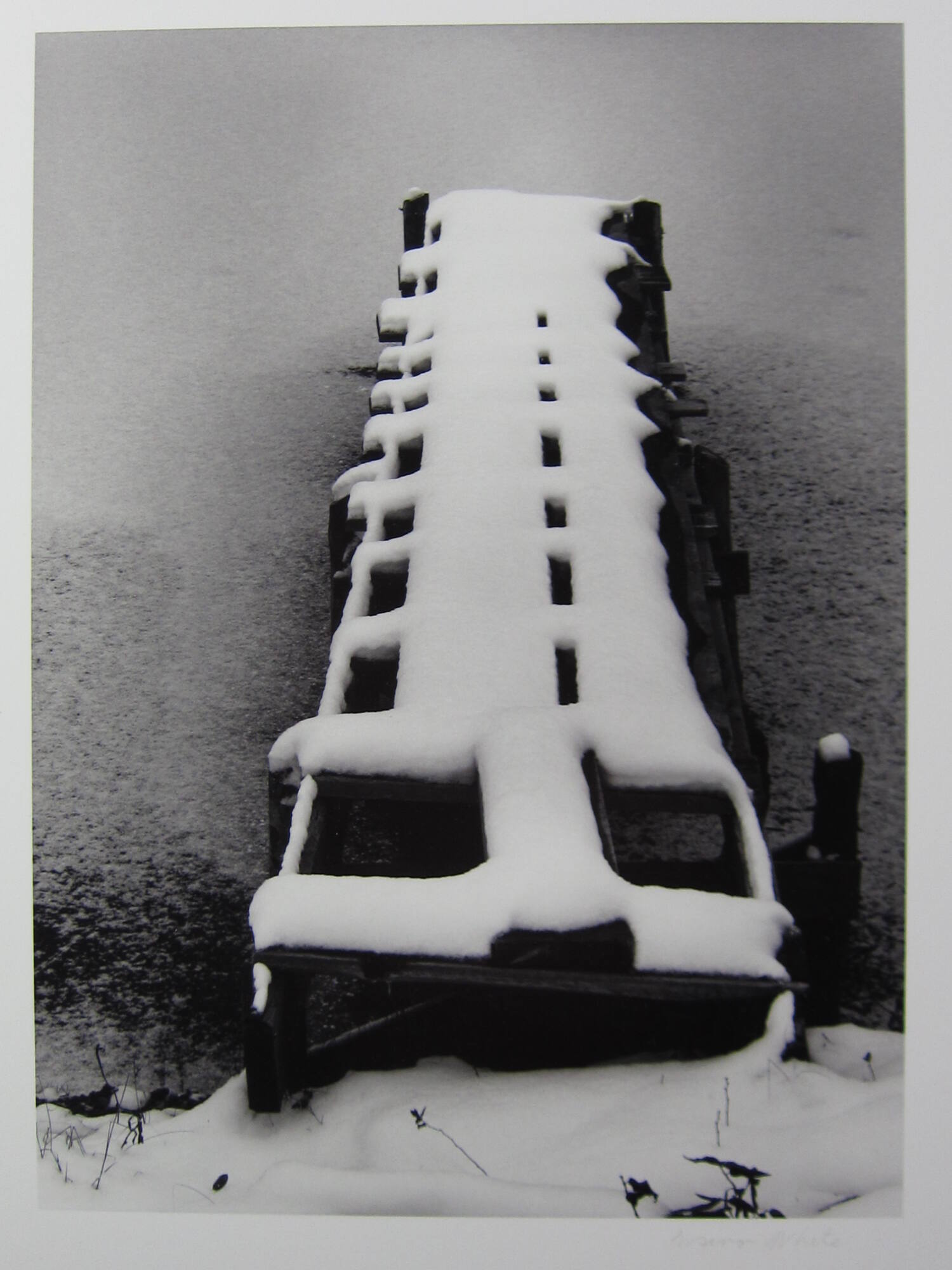 InscribedTitled and dated on mount recto, lower left, in pencil: "Dock in Snow - Vermont - 1971".