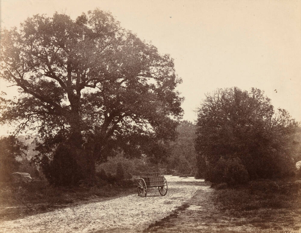 DescriptionImage of wooden cart on path flanked by trees; it is parked at a diagonal just before the bend in the road.Exhibition HistoryAbenteuer Barbizon. Von der Heydt Museum, Wuppertal, 2007, cat 113.