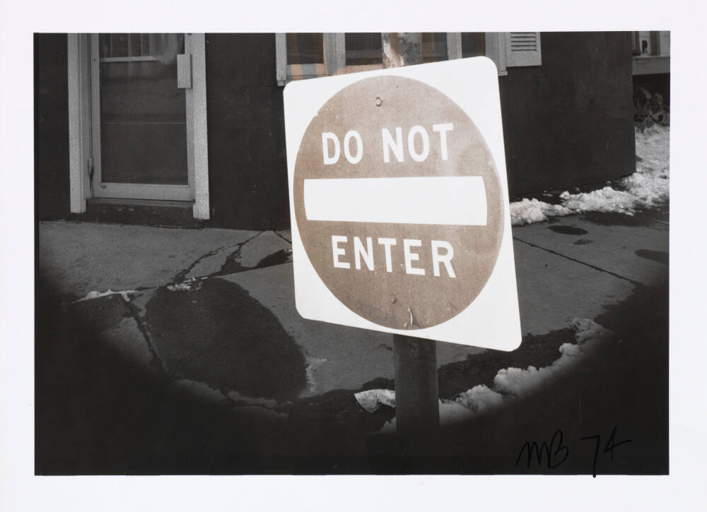 DescriptionImage of a "Do Not Enter" street sign in front of a cracking sidewalk lined with snow.ProvenanceEstate of Michael Bishop;