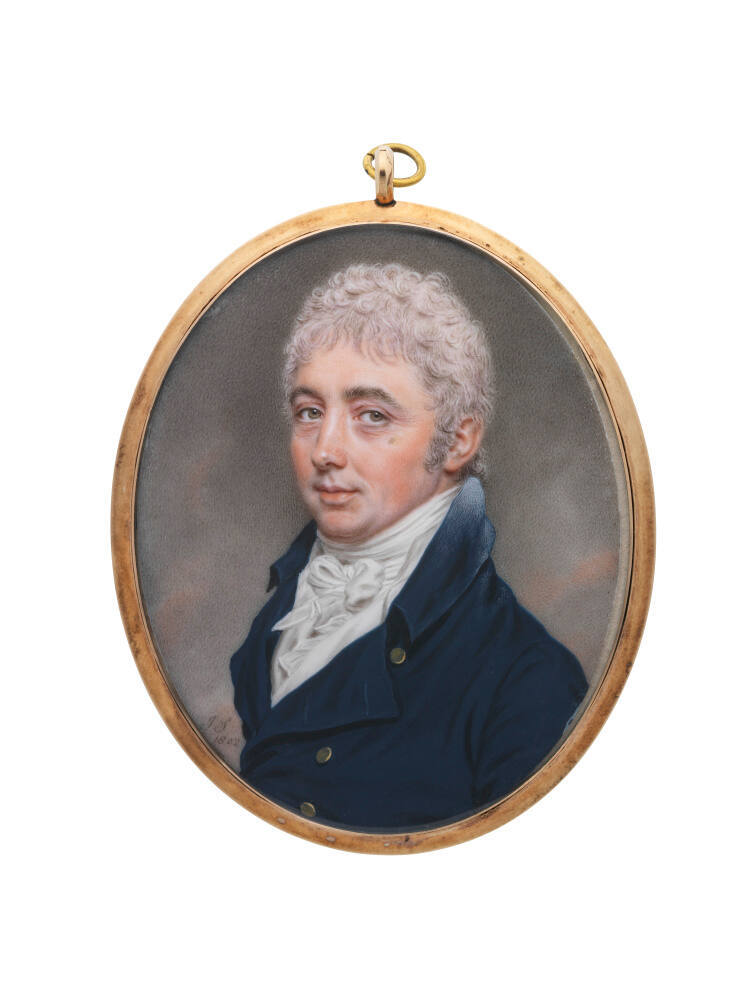 DescriptionPortrait miniature of a man wearing a blue coat before a gray background.Provenance