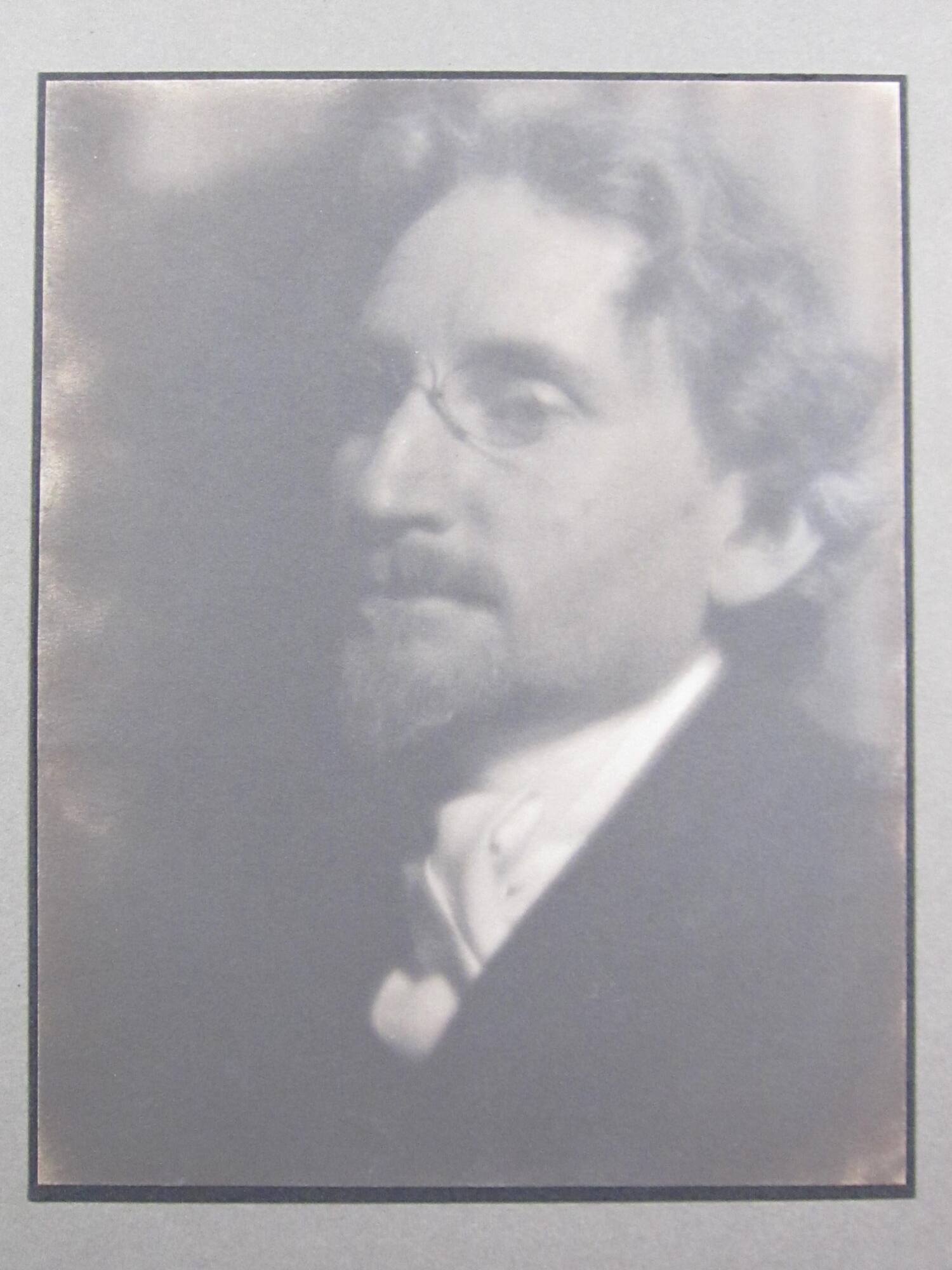 DescriptionSoftly focused portrait of man with oval spectacles, goatee, wavy hair, and white ascot with a dark jacket.ProvenanceThe Hall Family Foundation, Kansas City, MO, 2017;