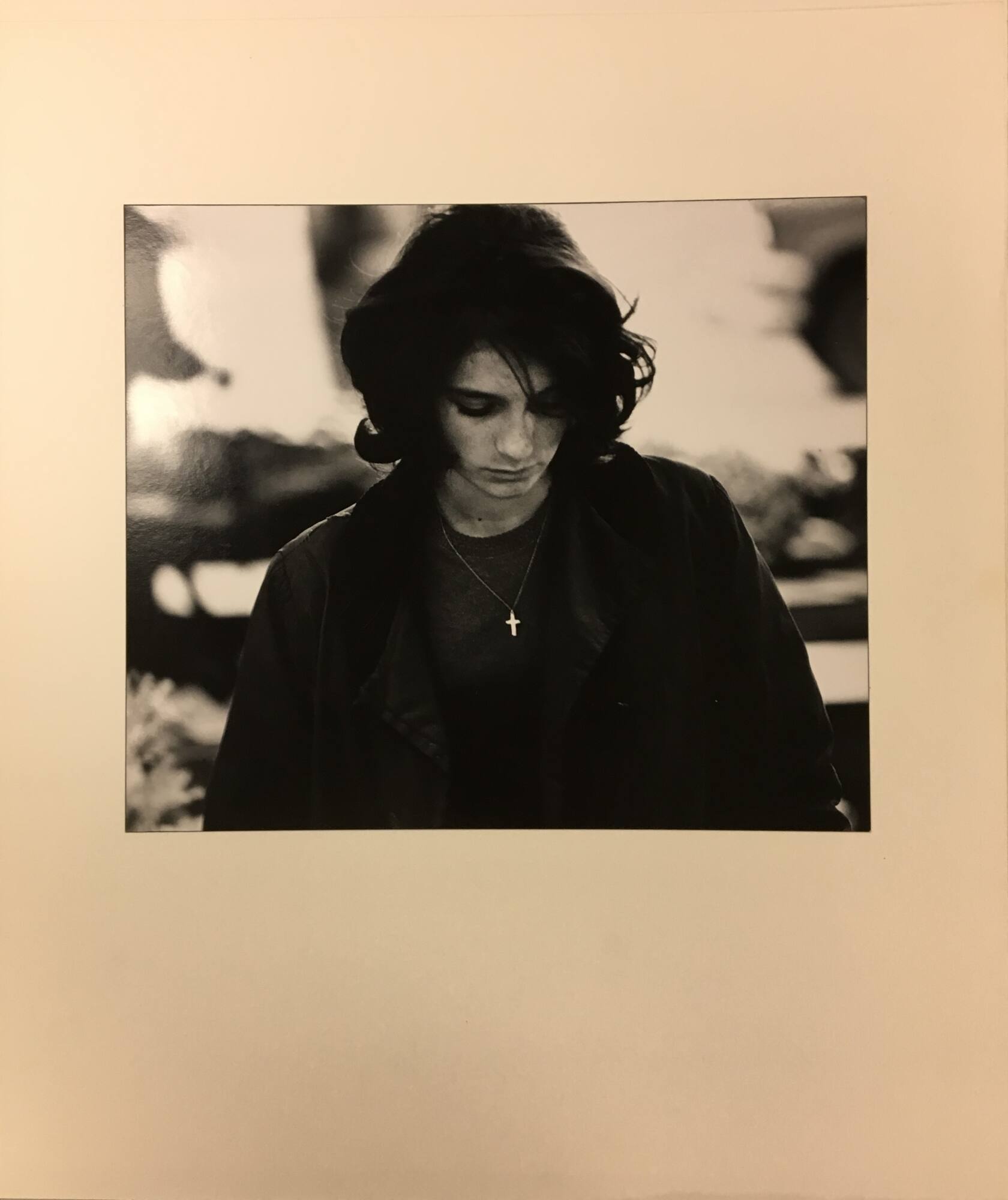DescriptionImage of woman with short hair wearing a dark shirt, jacket, and cross around her neck. Her face is turned downward.ProvenanceThe Hall Family Foundation, Kansas City, MO, 2017;