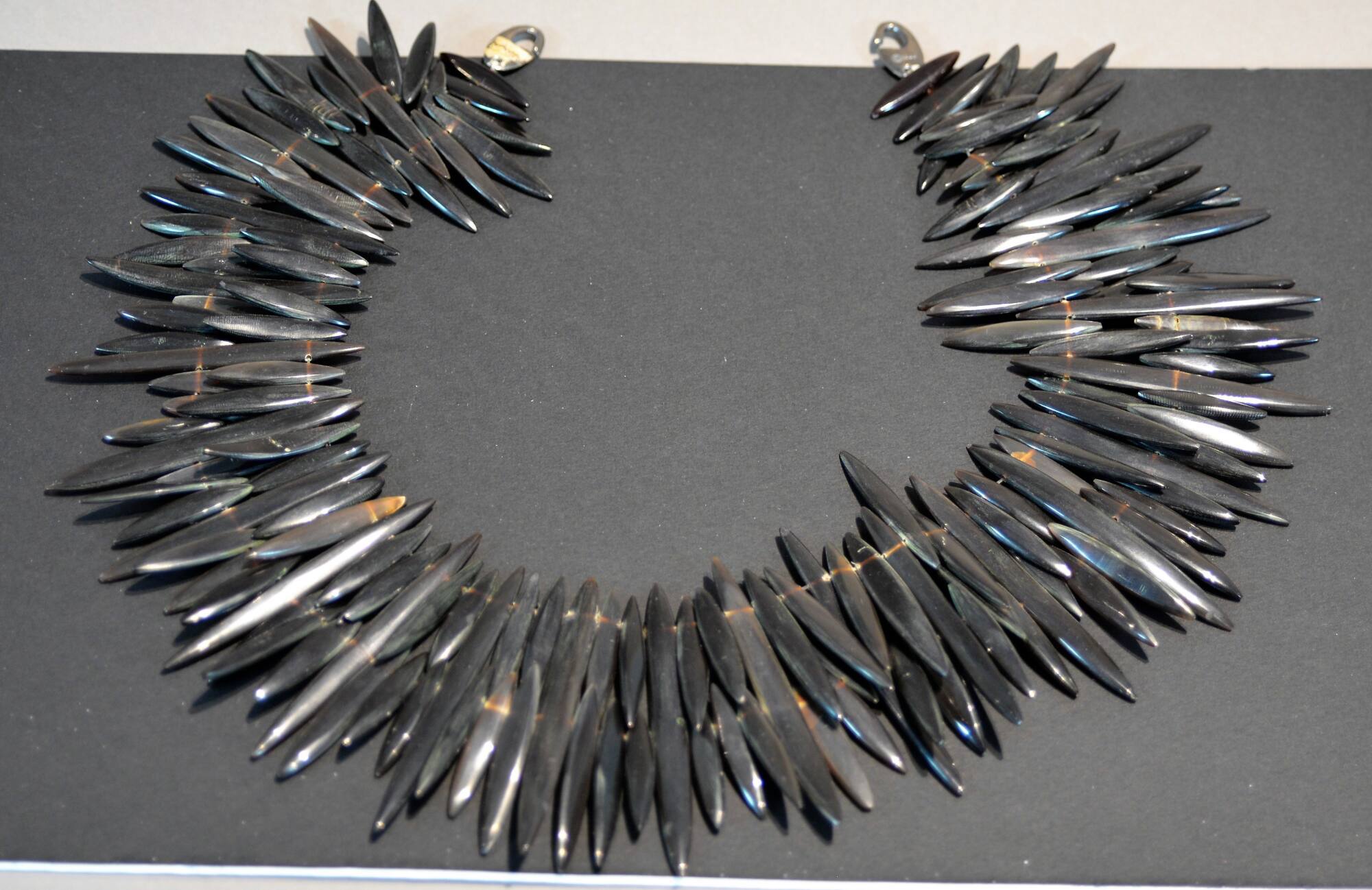 DescriptionA necklace made with two rows of pointed elliptical shapes, in black horn.