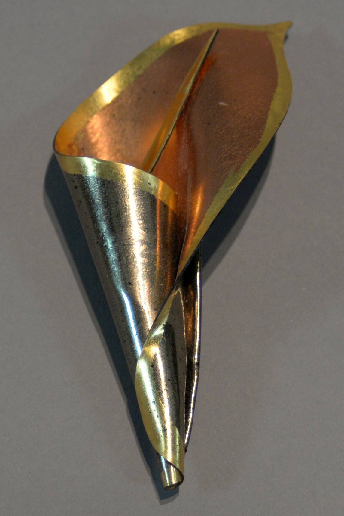 DescriptionA shiny metal colored sheet, rolled into a cone shape to create a pin.