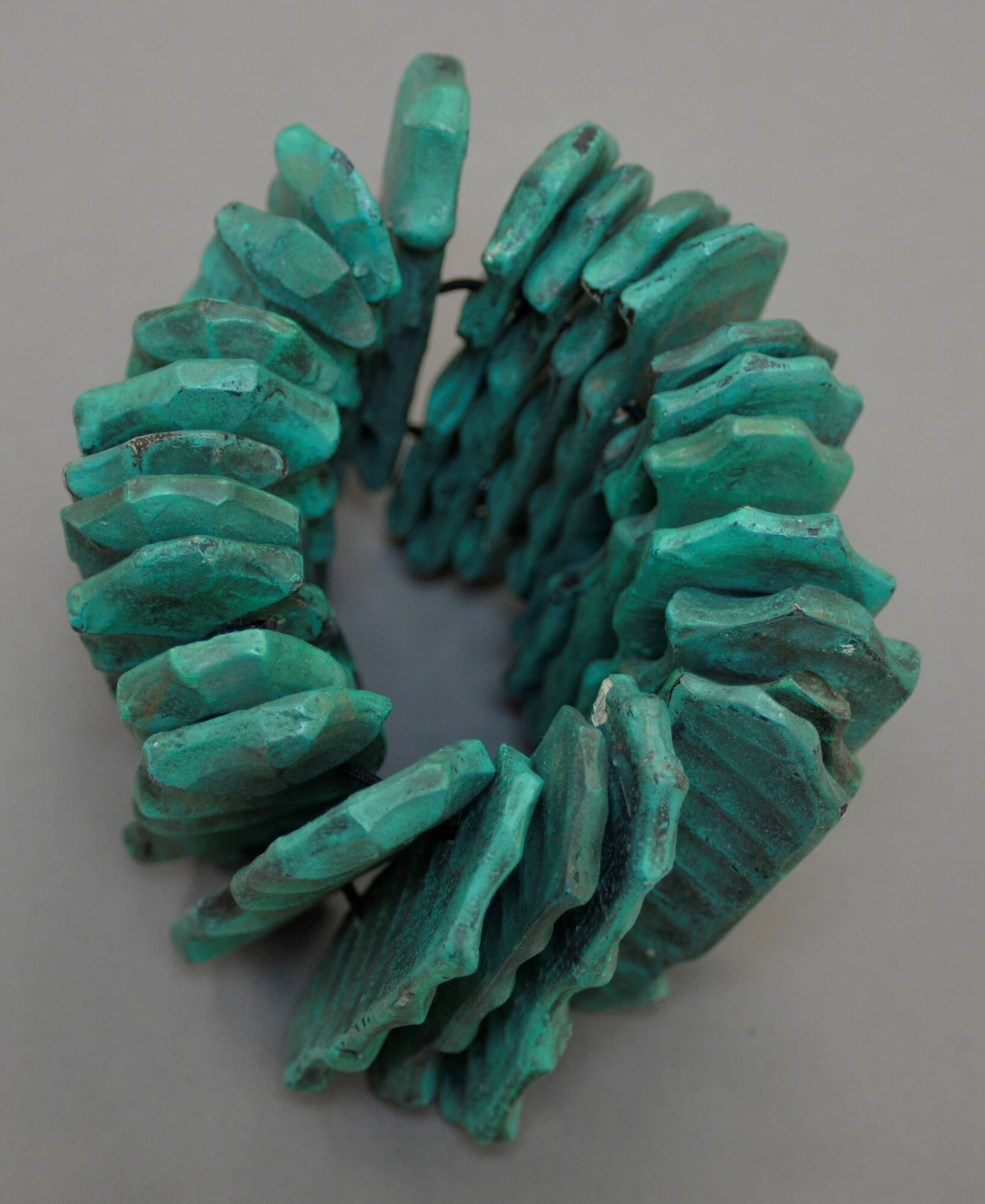 DescriptionA pale green bracelet composed of textured slate-like rectangles.
