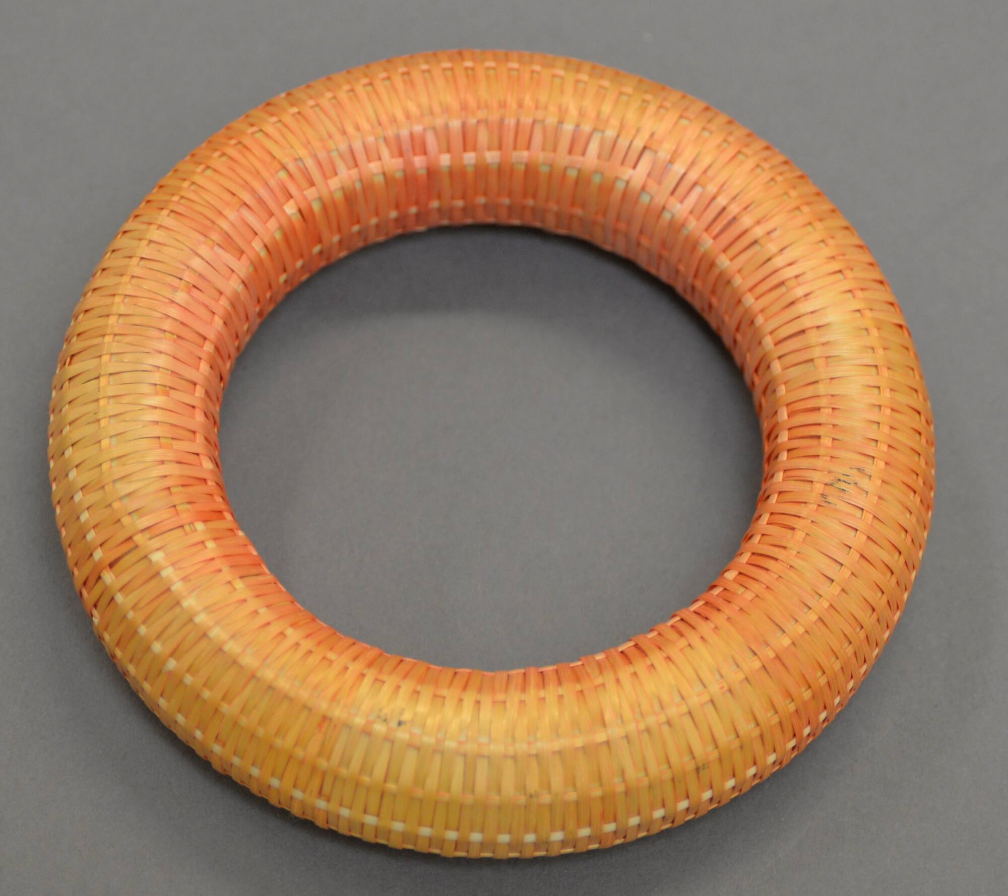DescriptionCircular bangle wrapped in yellow fibers.