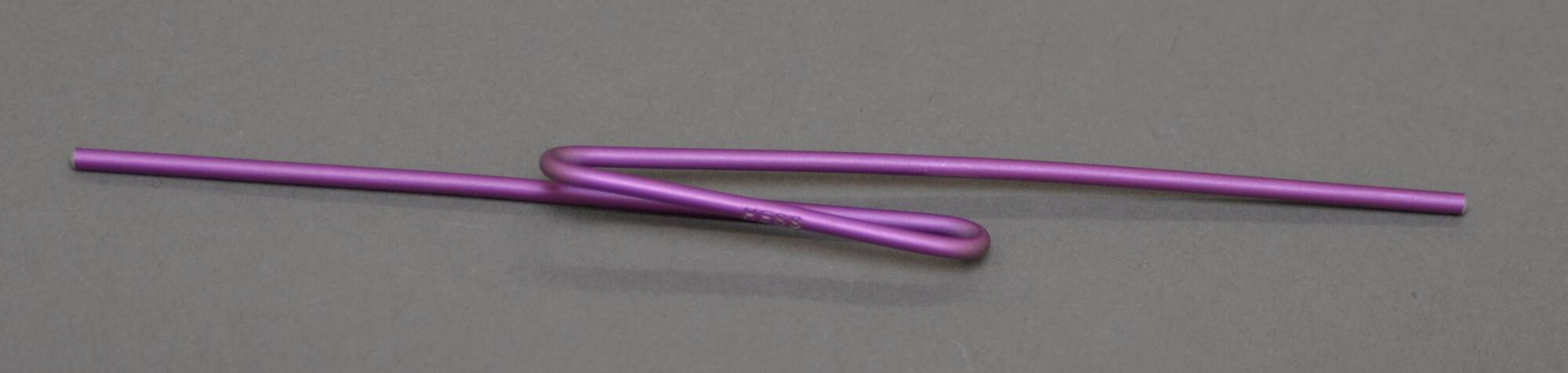 DescriptionA purple piece of wire bent to have an elongated oval loop in the center.Copyright© Johanna Hess-Dahm