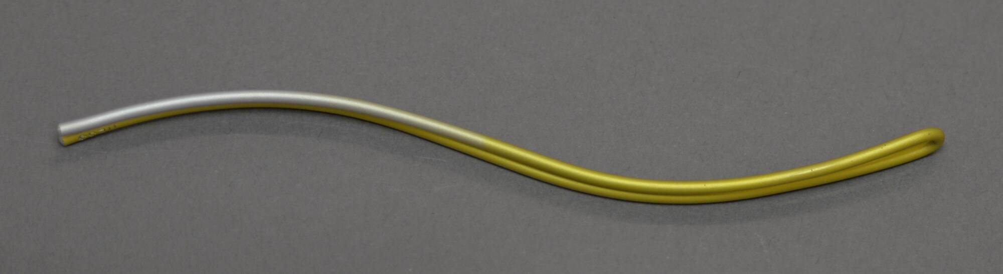 DescriptionA silver folded piece of wire with a slight curve and painted yellow from the fold halfway down the piece.Copyright© Johanna Hess-Dahm