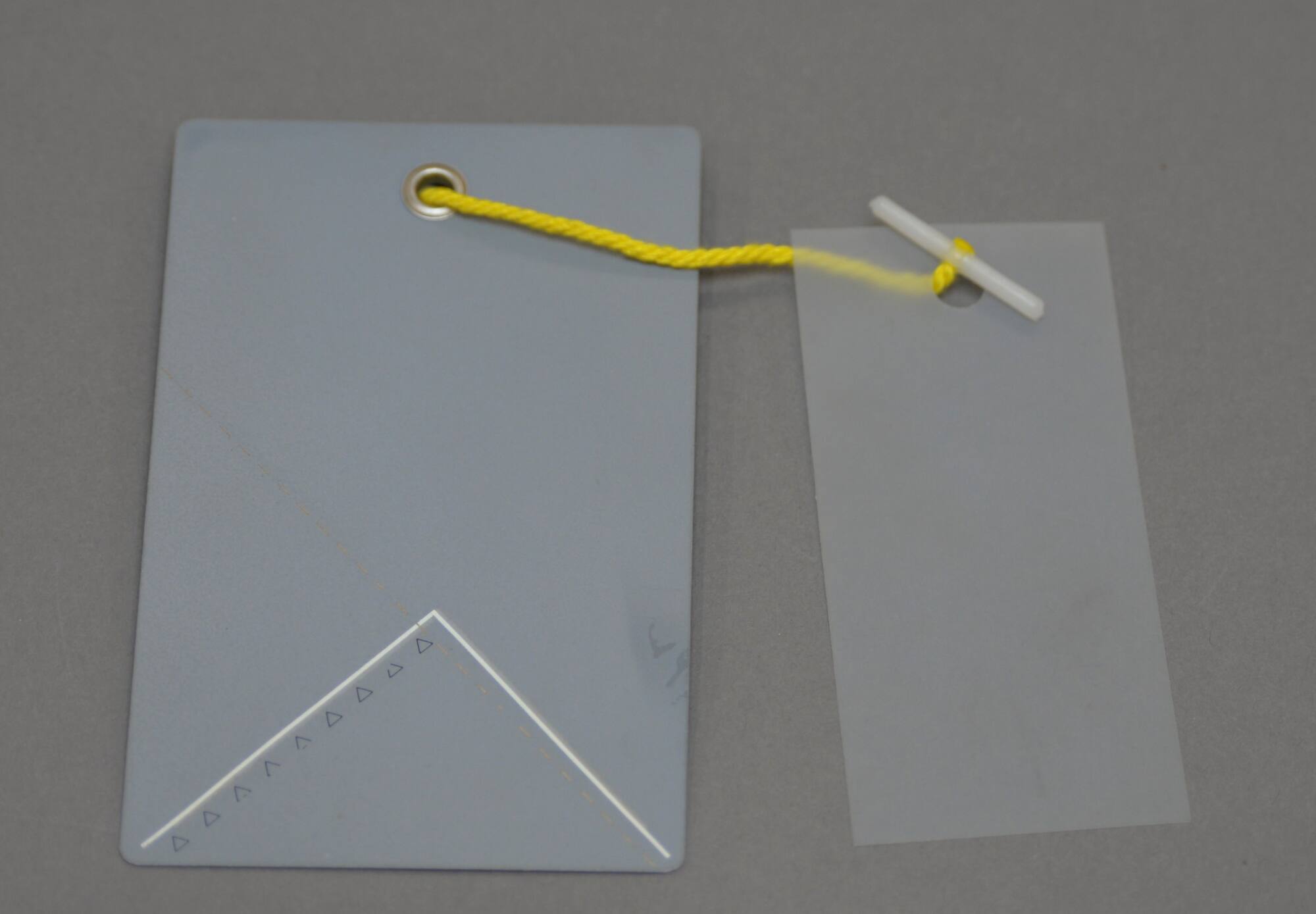 DescriptionTwo grey rectangles with a hole at the top center of each and a yellow cord looped through the holes connecting them.