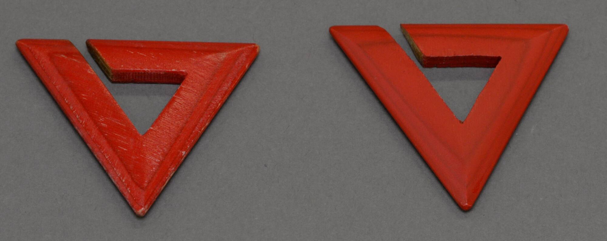 DescriptionRed triangle earings with the center cutout.