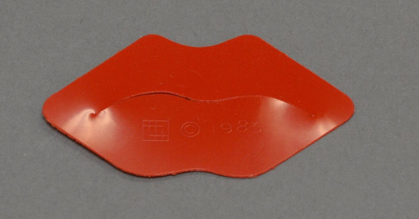 DescriptionA flat red piece of plastic in the shape of lips with a horizontal slit in the middle.Copyright© Herman Hermsen
