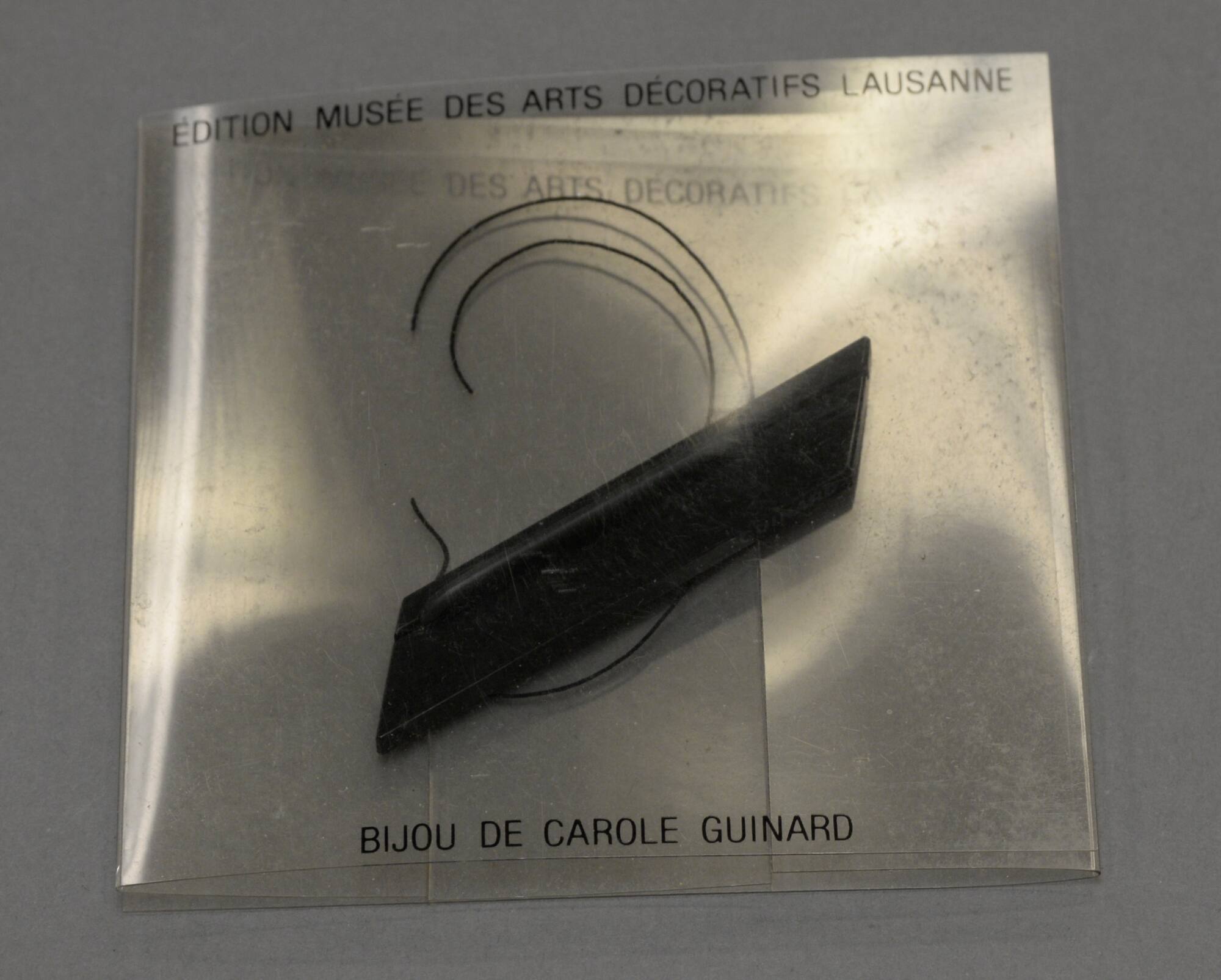 DescriptionA single black parallelogram worn as a bar across the ear.