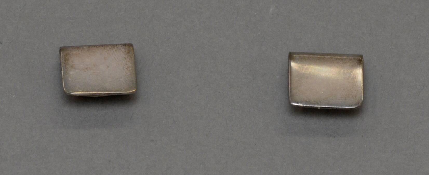 DescriptionA pair of silver square ear cuffs.Copyright© Estate of Marjorie Schick
