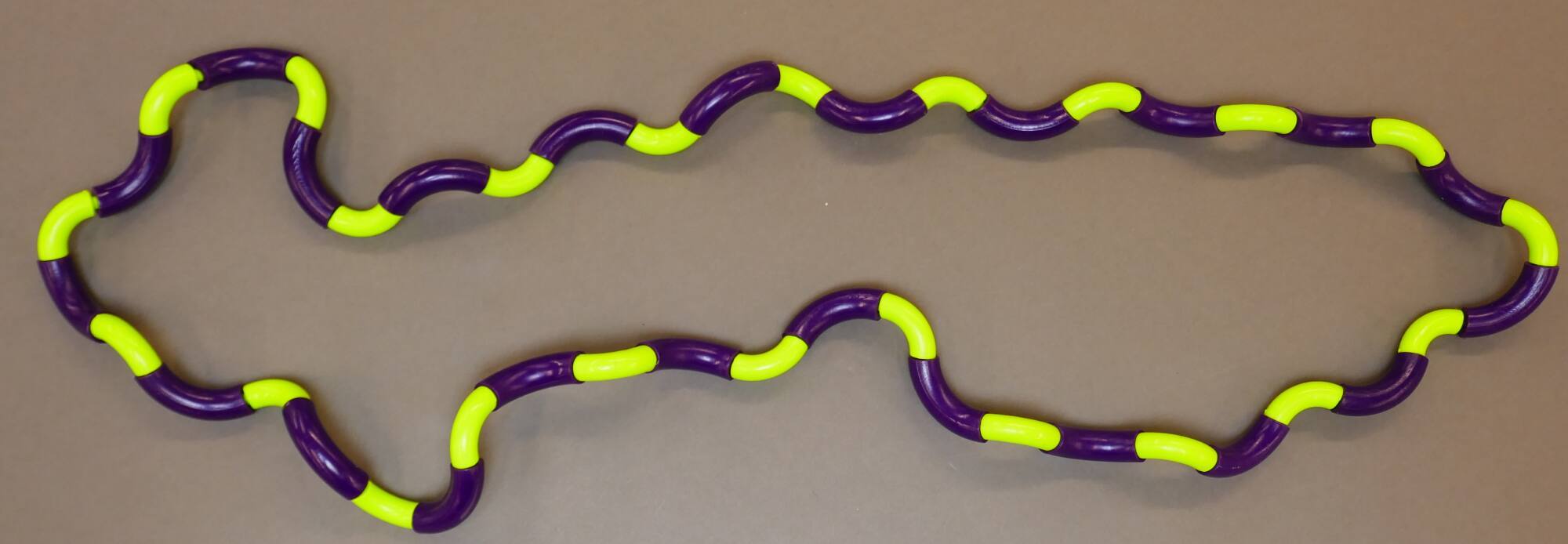 DescriptionA necklace made of a variety of opaque thin "Tangle" pieces alternating in purple and yellow.
