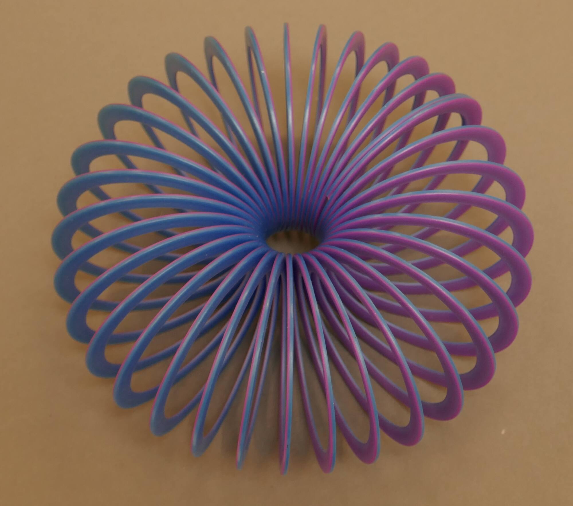 DescriptionA bracelet resembling a blue and purple flat-coiled slinky.