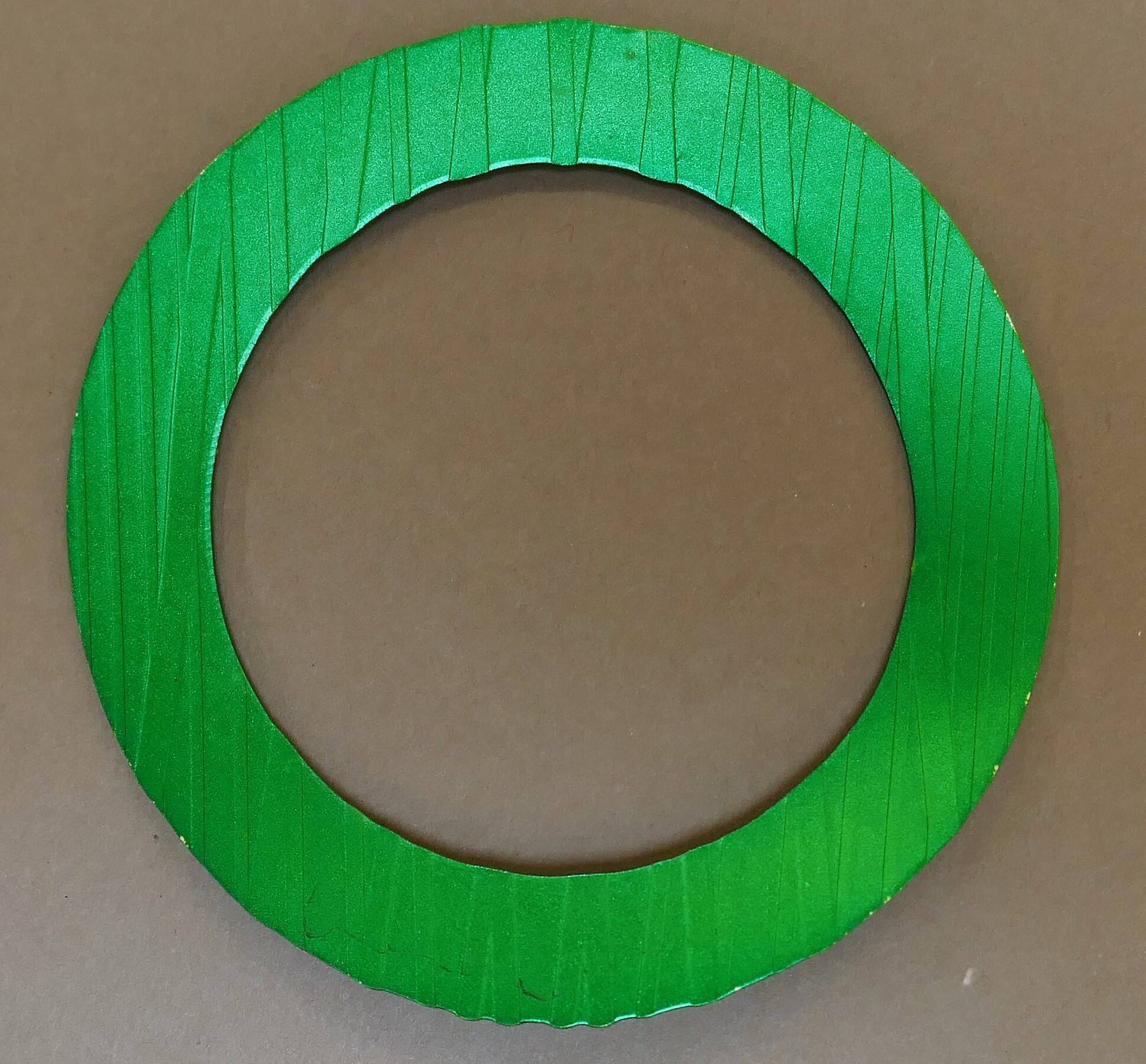 DescriptionA green flat silver bangle with impressed lines.