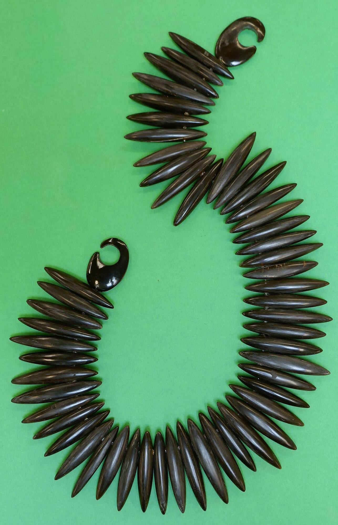 DescriptionA necklace made of a single row of pointed elliptical shapes, in dark brown horn.