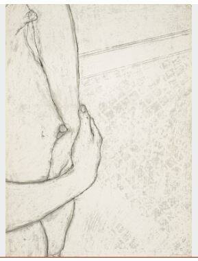 DescriptionThe print functions as a black and white “drawing” of the cropped figural form of a human being. It depicts a downward view of a bare torso and breast, a right hand over the left, resting below the figure’s belly button.Copyright© The George and Helen Segal Foundation / Licensed by VAGA at Artists Rights Society (ARS), New York