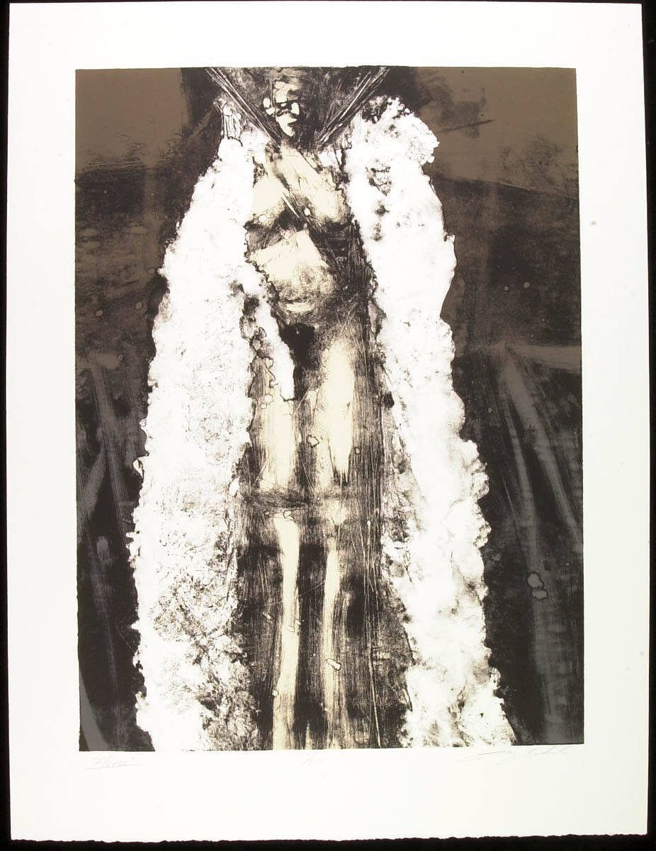 DescriptionImage of a nude figure wearing a long cape made of fleece.Copyright© Larry Schuh