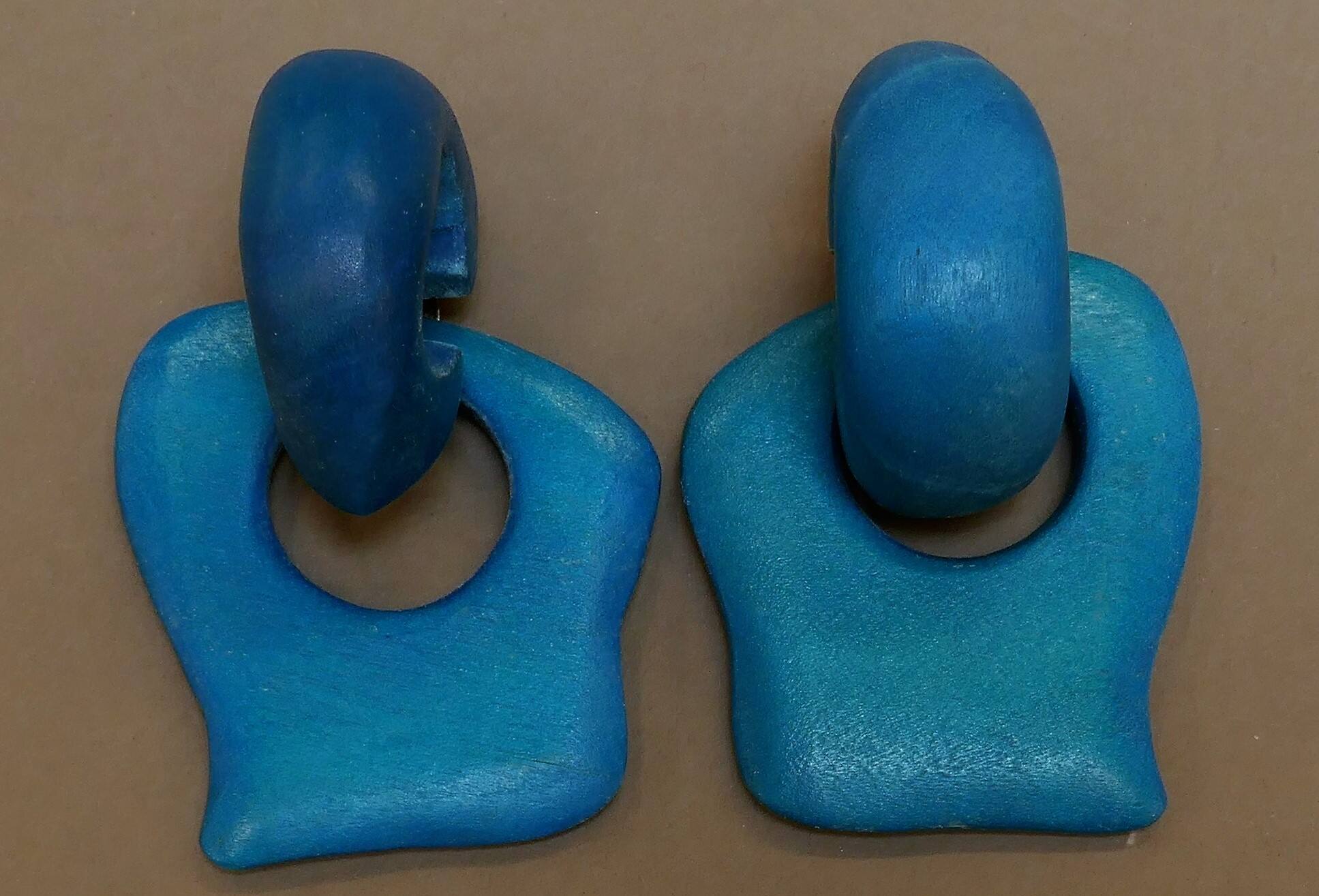 DescriptionBlue, flat organic shapes with a cutout for a thick ring.