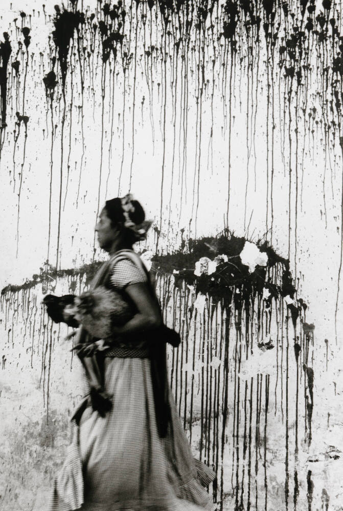 DescriptionImage of a woman in profile carrying a chicken under her left arm. She walks past a wall with splattered and dripping paint.ProvenancePurchased from Etherton Gallery, Tucson, AZ by The Hall Family Foundation, Kansas City, MO, 2017;