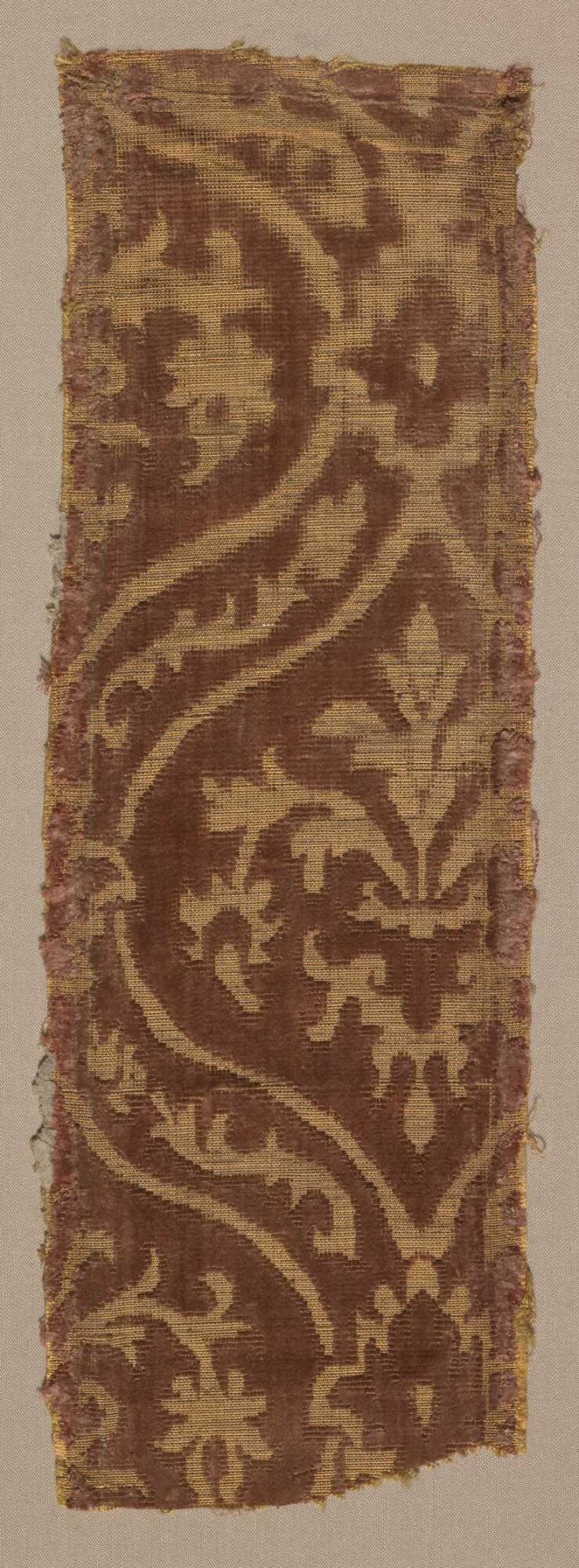 DescriptionConventional floral design cut in apricot velvet on a gold thread base.