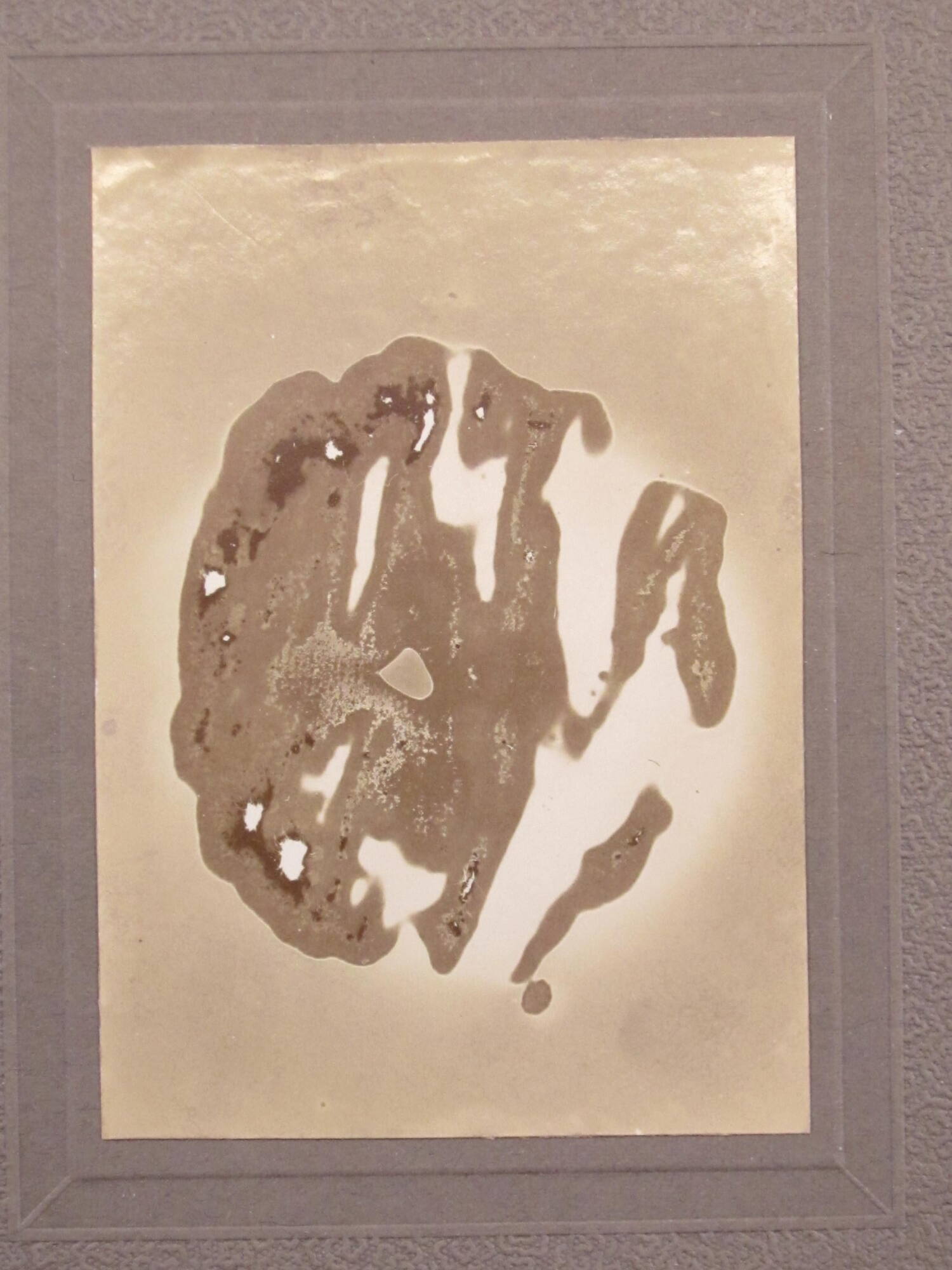 InscribedInscribed on mount verso, top, in blue pen: "Impression par l'azoture / - d'uranium."