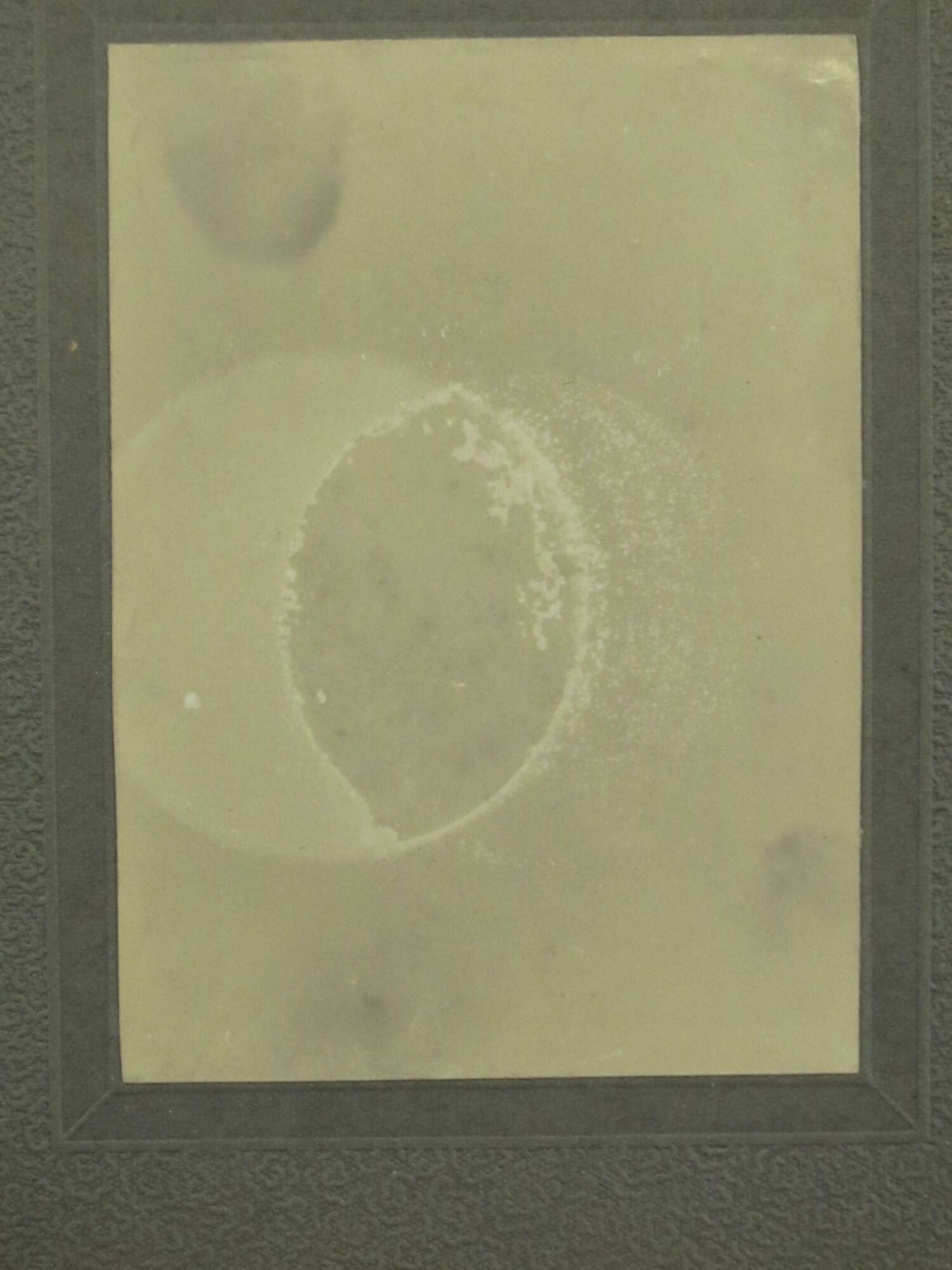 InscribedInscribed on mount verso, top, in blue pen: "Impression due a l'azoture de bare."