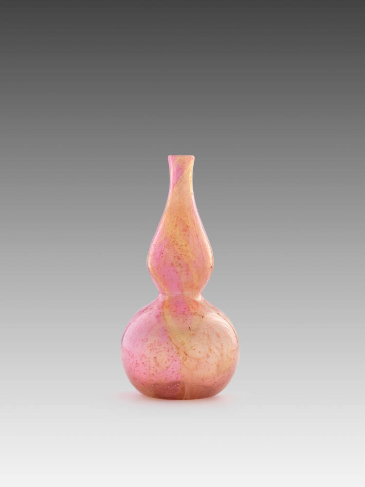 DescriptionPink bubbled glass vase mottled with yellowish swirling bands and metallic powder suspended in the glass. Double gourd shape, with a bulbous lower body atop a narrower neck.ProvenancePurchased from H.Blairman & Sons by The Nelson-Atkins Museum of Art, Kansas City, Missouri, 2018