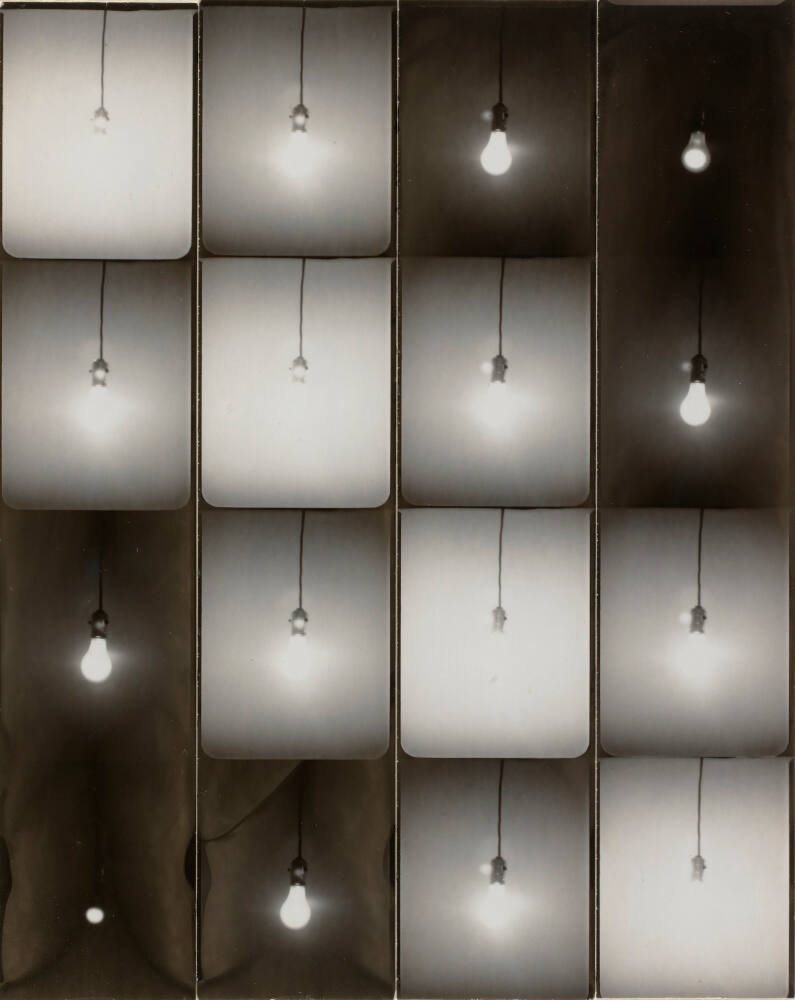 DescriptionComposite image composed of four photo strips, each with four images. All images depict a single illuminated light bulb hanging from a cord near the center of the frame.ProvenanceThe Hall Family Foundation, Kansas City, MO, 2018;