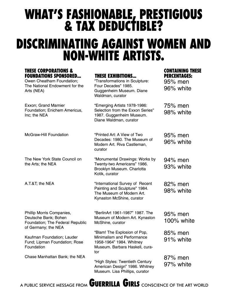 DescriptionPoster with white ground and black text.Copyright© Guerrilla Girls