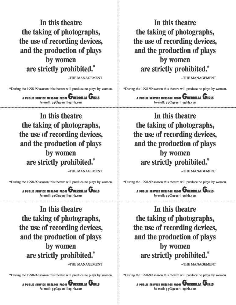 DescriptionSheet of stickers with black textCopyright© Guerrilla Girls
