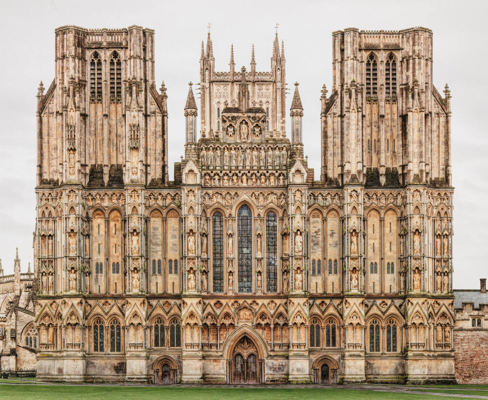 Since 2005, Markus Brunetti has travelled around Europe photographing medieval religious architecture, such as this cathedral in Somerset, England, built between 1176–1450. The photographs are far from straightforward documentations. Brunetti makes between 1,000 and 2,000 digital captures of each façade, one square meter at a time. He then digitally stiches the images together to create the final piece. The work renders the architecture with a degree of detail that would be impossible to discern with the naked eye.