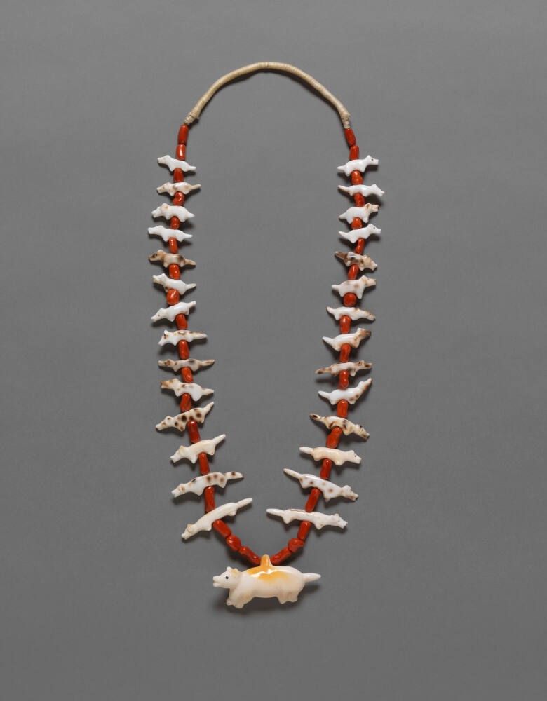 DescriptionNecklace with carved figures, graduated in size, of animals with a carved bear at the bottom.ProvenanceMr. and Mrs. Tony and Marti Oppenheimer, Westlake Village, CA;