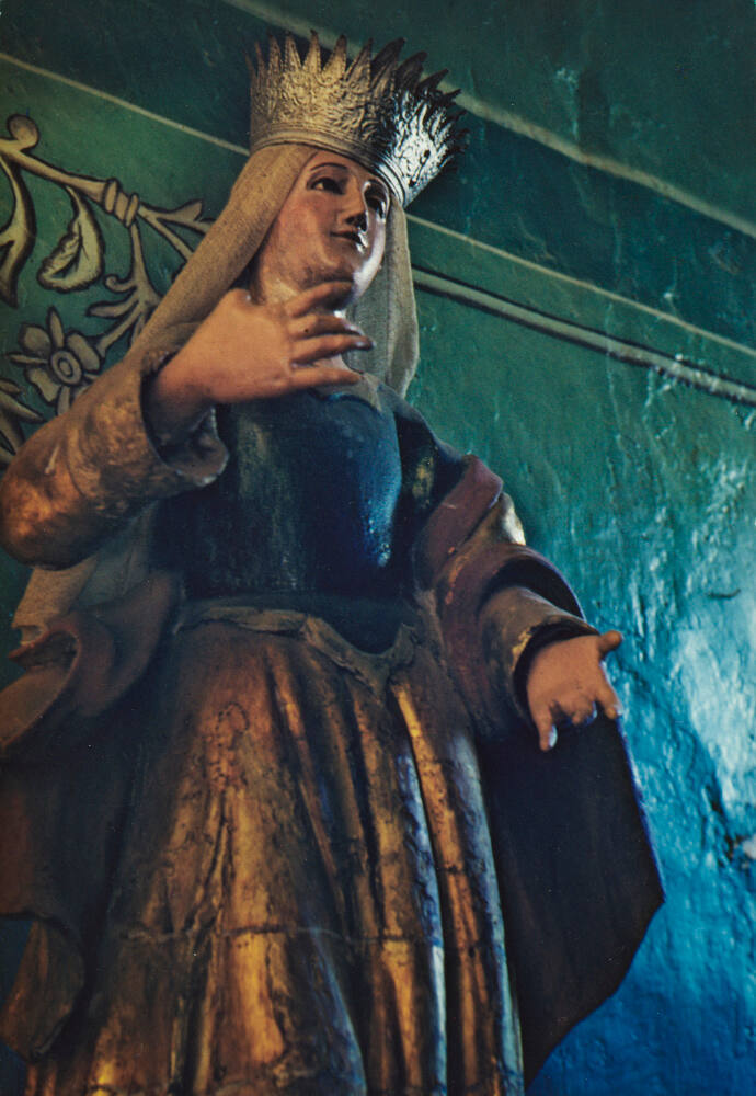 DescriptionImage of a carved female statue; her arms are outstretched and she is wearing a long dress and a gold crown.ProvenanceDr. Seth and Erin Neubardt, Rye, NY;